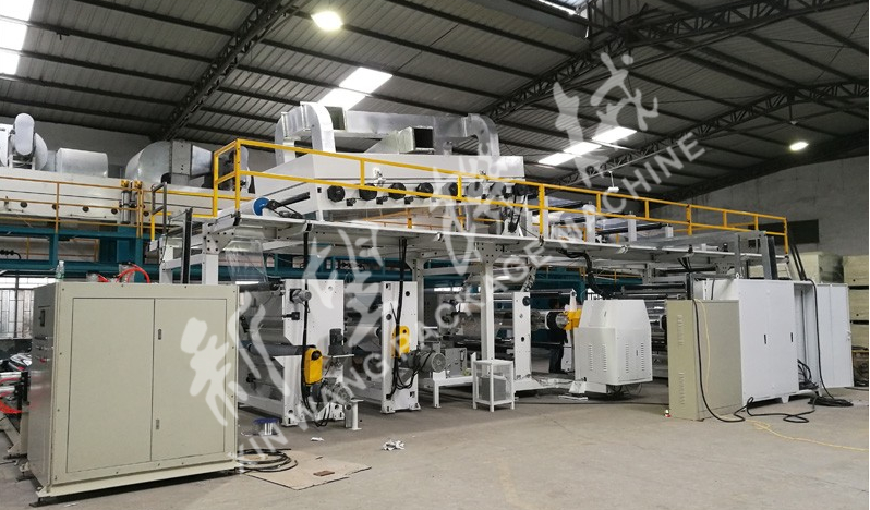 五輥轉(zhuǎn)移涂布機的涂布輥運動可分為同步或異步控制。當(dāng)采用異步控制模式時,涂布輥獨立運轉(zhuǎn):當(dāng)采用同步控制模式時,涂布輥的運轉(zhuǎn)速度由卷材張力控制:由于五根輥分別由五臺伺服電機配合減速機,聯(lián)軸器單獨驅(qū)動。其中計量輥、轉(zhuǎn)移輥、涂布輥之間的速比可在觸摸屏設(shè)定由PLC控制配合觸摸屏設(shè)定控制:轉(zhuǎn)移輥上有一套刮刀,紙寬為1000mm以下的兩端膠水將由刮刀刮掉。